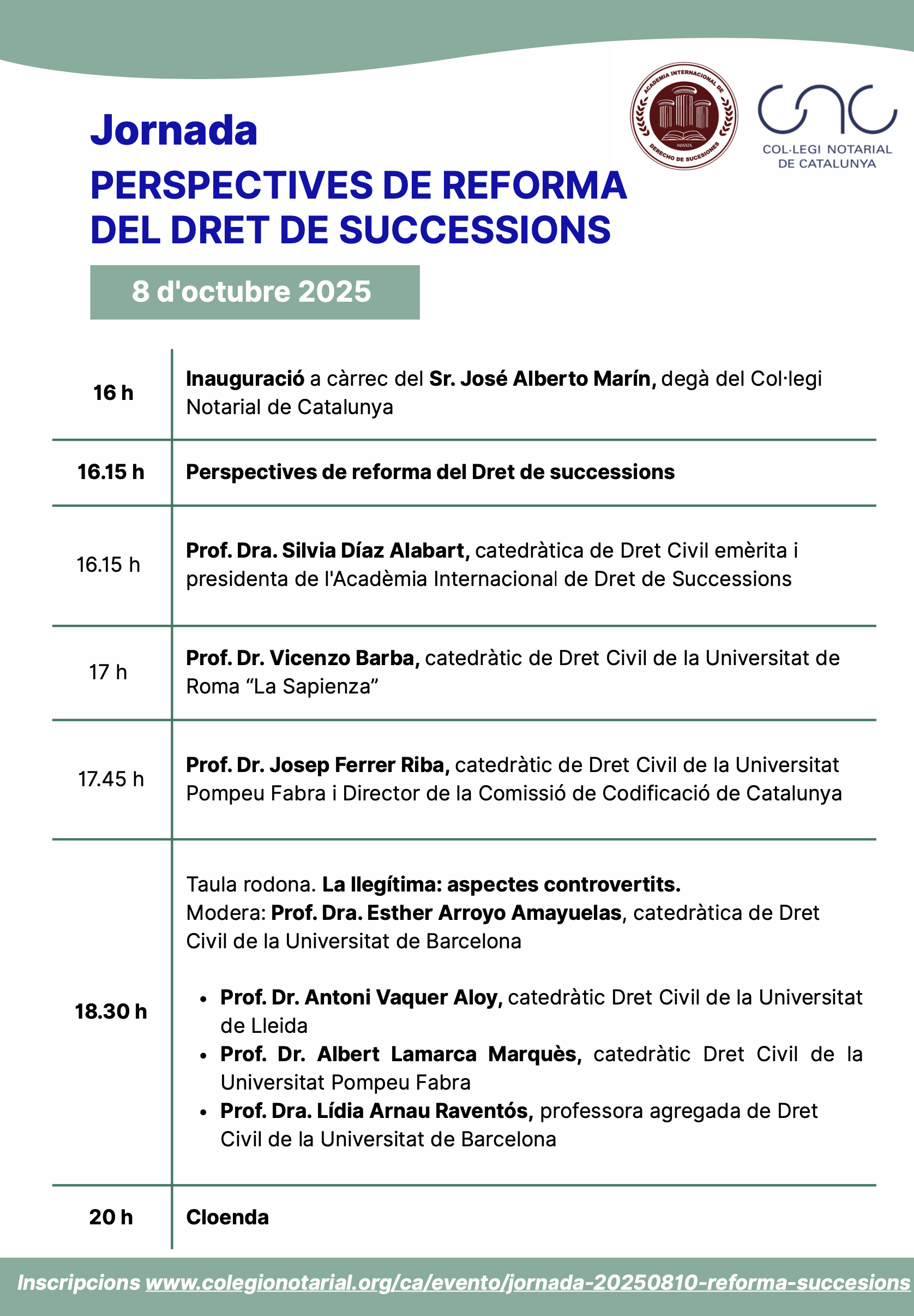 Una jornada que abordarà els principals reptes i propostes de reforma del dret successori a Catalunya.