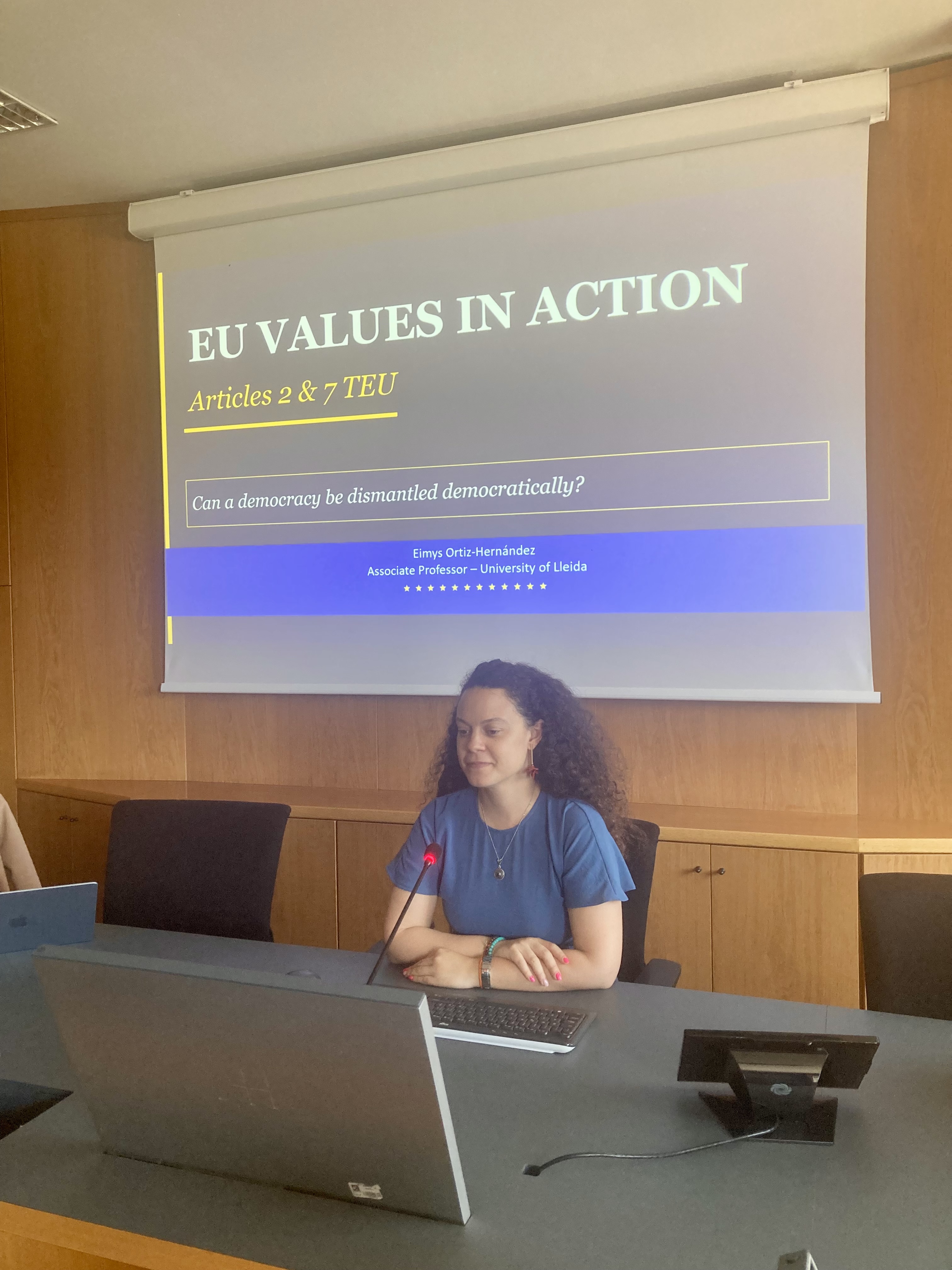 La professora Eimys Ortiz, vicedegana de la FDET, ha inaugurat el curs amb la lliçó " EU values in action" en la qual ha proposat als estudiants un role play.
